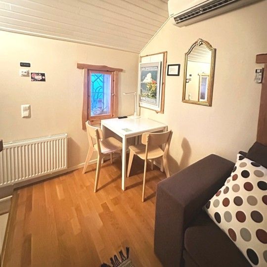 Peipposen viehättävä 35 m²:n huoneisto tarjoaa kodikasta asumista historiallisessa puutalomiljöössä. Huoneistossa on ilmalämpöpumppu, oleskelutila, tilava sauna ja suihkuhuone, erillinen wc sekä 15 m² parvi. Parkettilattia luo lämpimän tunnelman, ja keittiöstä löytyy astiasto, keittolevyt, jääkaappi, mikroaaltouuni sekä veden- ja kahvinkeitin.