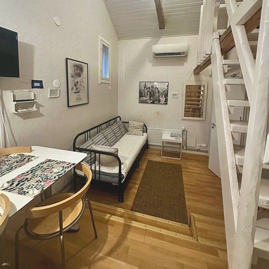 Viehättävä noin 38 m² puutalohuoneisto tarjoaa kodikkaan ja viihtyisän ympäristön pitkäaikaiseen majoitukseen. Rauhallinen sijainti Vanhankaupungin sydämessä yhdistyy moderniin mukavuuteen – ilmalämpöpumppu, takka, hyvin varusteltu keittiö tekevät asumisesta vaivatonta. Huoneistossa on olohuone, keittiö/ruokailutila, wc ja suihku. Majoitustilaa kahdelle, parisänky ja levitettävä vuodesohva. Liinavaatteet, pyyhkeet ja läheinen autopaikka sisältyvät hintaan.