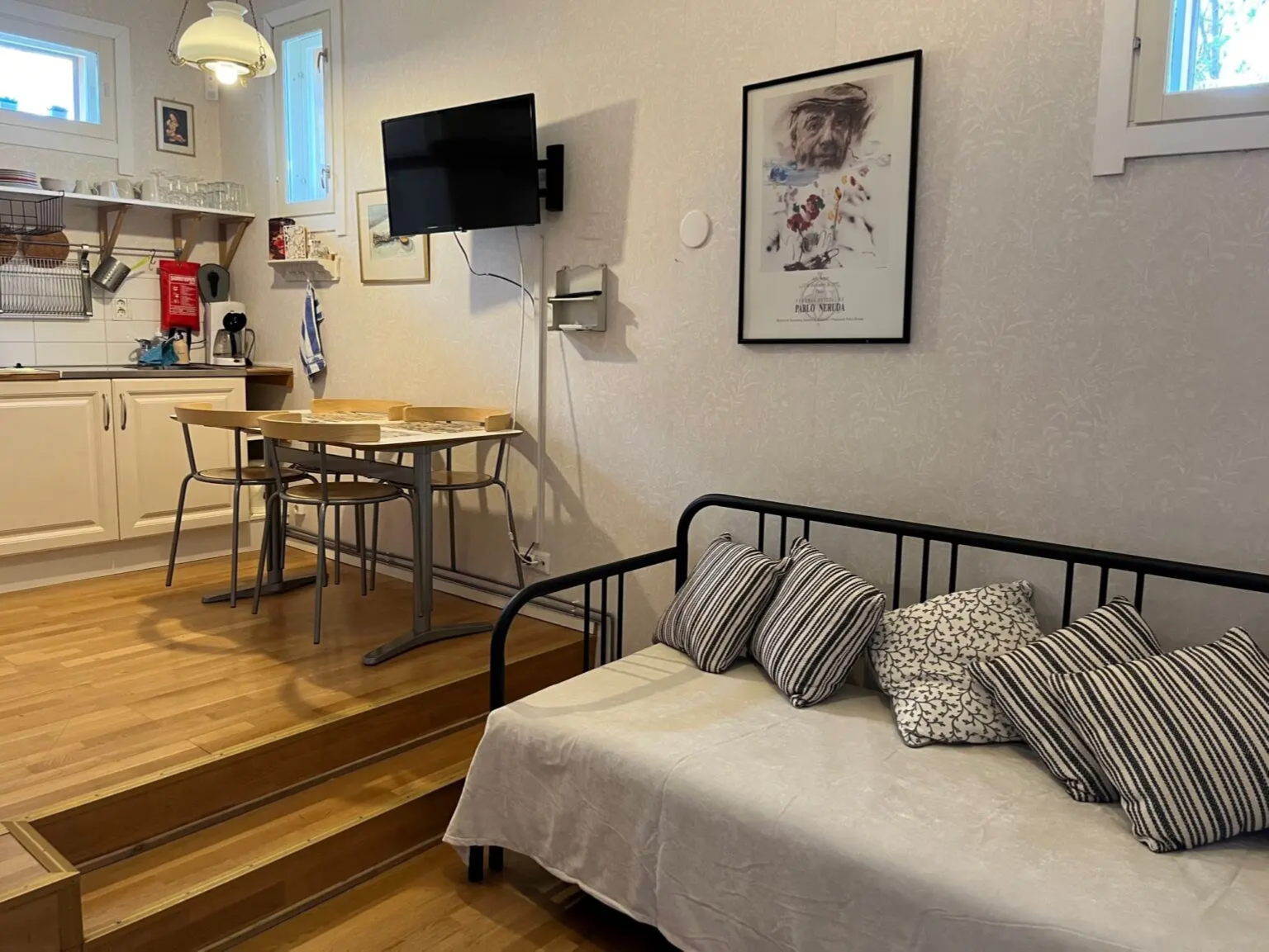 Varpunen on viehättävä huoneisto, joka sopii kahdelle aikuiselle. Huoneistossa on kaksi erillistä sänkyä ja levitettävä vuodesohva.